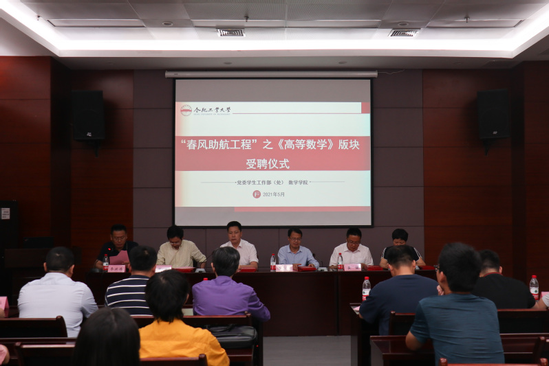 On the evening of May 28th, the employment ceremony – the first counselling report of the “Advanced Mathematics” section of the “Spring Breeze Aid to Navigation Project” of our school was held in the fifth conference room, Building A, Science and Education Building on Emerald Lake campus. The party committee student affairs department of university, persons in charge of the School of Mathematics, appointing teachers and students attended the employment ceremony. The ceremony was presided over by Ting Wei, deputy secretary of the party committee and secretary of the disciplinary committee of the School of Mathematics.