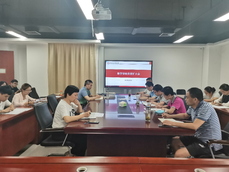 6月3日下午,在翡翠科教楼B座1710室召开数学学院党委扩大会暨党史学习教育推进会。会议由党委书记范仁庆主持,校党建联络员卢勇老师、学院党委委员、学生辅导员、各师生党支部负责同志参加。 推进会上,各师生党支部...