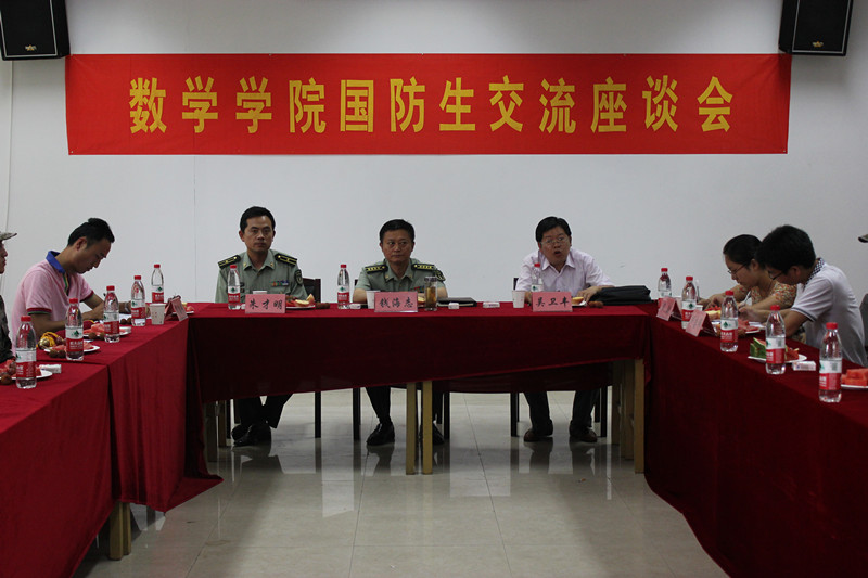 在毕业班国防生即将奔赴工作岗位、报效祖国之际,为了进一步将他们的优良传统和作风传承下去,7月6日下午,数学学院在翡翠湖校区管委会会议室举行了国防生交流座谈会。 会上,数学学院副院长吴卫丰老师首先对举办此次...