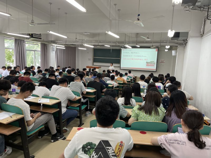 最后一次教育大会。6月9日上午,数学学院2021届毕业生文明离校教育会在翡翠湖校区5教204举行。会上,毕业班辅导员任颖就毕业生离校的相关事宜作了具体说明,对毕业派遣、离校手续办理、档案信息核对等事宜进行了温馨提示,并且希望全体毕业生能够牢记身份以自信饱满的精神面貌走向社会,开始新的人生旅途。学院党委副书记、纪委书记魏婷围绕“校的意义”和“爱的方式”,结合杰出校友事迹为毕业生做了临行前的“爱校荣校”教育,并希望毕业生在步入新的岗位后能够维护学校荣誉、树立终身学习观念、锻炼健康体魄。
