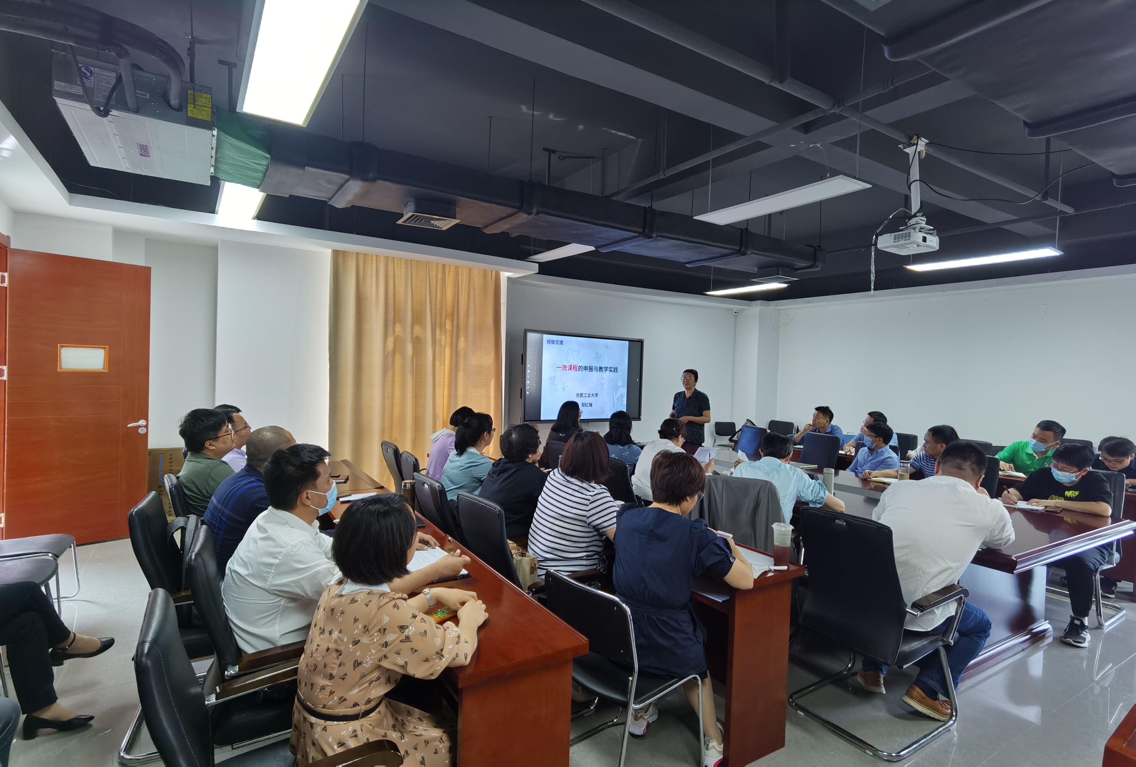 郑红梅教授目前主持国家级精品在线开放课程和国家级线上线下混合式一流课程,是安徽省一流课程评审专家。关于第二批一流课程,郑老师拥有丰富的申报心得和评审经验。首先,郑教授结合自己的申报心得和评审经验,介绍了国家级一流课程申报的类型、意义和重要性;其次,结合本次一流课程(线上、混合)申报书的各个板块,详实地介绍了撰写体会、具体做法以及注意事项;最后,在报告的提问和讨论环节,郑教授仔细解答了参会人员关于一流课程申报书撰写过程中的疑点、难点,并给出了相应的意见、建议和技术指导,勉励年轻教师对于教育教学要早计划、多投入、重成效。本次讲座为我院一流课程的申报提供了技术和方法的指引,参会教师受益匪浅。