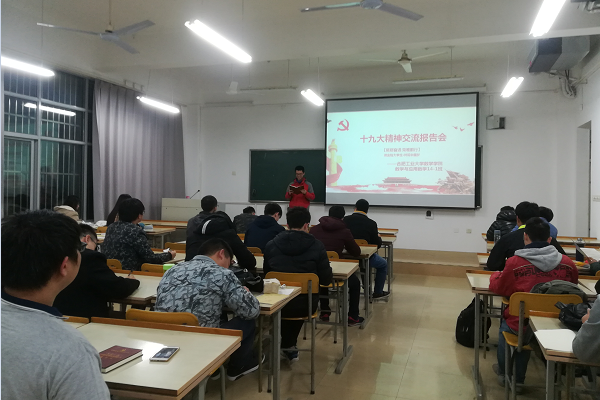专题团课上,各团支部书记结合实际带领支部同学们一起学习了党的十九大报告的主要内容,解读了党章做出的重大修改,重点围绕“青年有思想,头脑有武装;青年有目标,奋斗有方向;青年有本领,成功有保障”介绍了十九大报告与青年的关系。