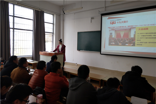 数学学院党委书记方留就学院全体师生如何更好地学习宣传贯彻党的十九大精神,进一步提出了具体要求,强调各党支部要严格按照学院党委的实施方案进行工作布置和安排,明确学习要求,坚持全面系统学习,突出学以践行,落实政治责任,不折不扣的完成各项学习任务,不断深化对党的十九大精神的学习和贯彻。