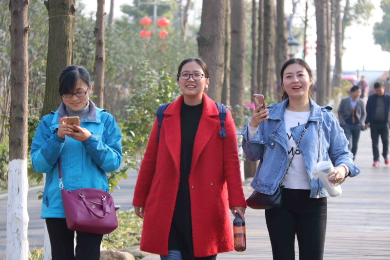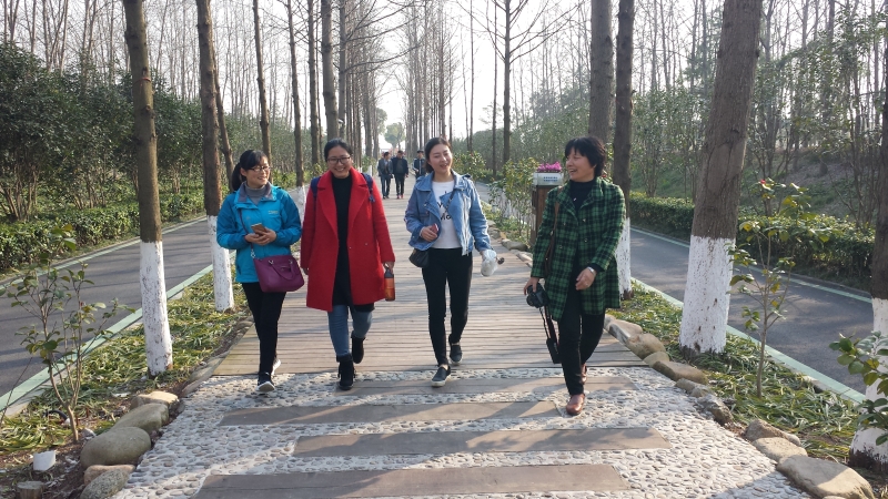 3月8日下午,数学学院女教工们乘坐一辆大巴车,大家喜气洋洋,奔赴滨湖湿地公园。阳春三月,柳绿梅红,草长莺飞。到达之后先拍一张集体照,穿红着绿,精神百倍。随后进入公园林荫大道,那里空气清新,温度适宜,人心舒畅。