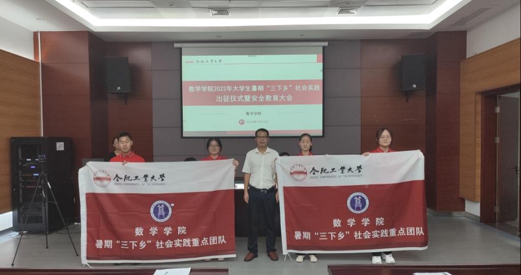 根据学校关于2022年大学生暑期“三下乡”社会实践工作的部署安排和要求,结合疫情防控常态化要求和学院工作实际,7月15日,数学学院2022年大学生暑期“三下乡”社会实践出征仪式暨安全教育与经验分享大会在翡翠科教楼A座第五会议室成功举办,学院党委书记、副书记,各年级辅导员,立项团队全体成员参加本次活动,部分同学通过线上形式参加。