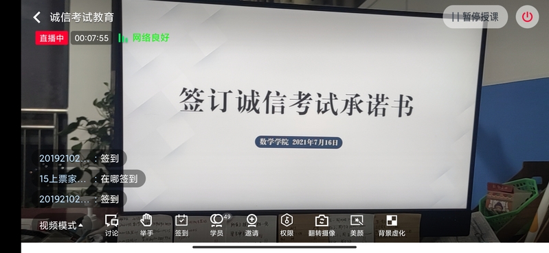 7月16日,为进一步严肃考风考纪,增强当代大学生的诚信意识和责任意识,营造风清气正的考试风气,在考试周期间,英国365集团官网“明礼诚信 正风考纪”考试诚信教育线上宣讲活动,本次宣讲由韩玉洁老师主持,共有四百余位同学参与并签订了诚信考试承诺书。