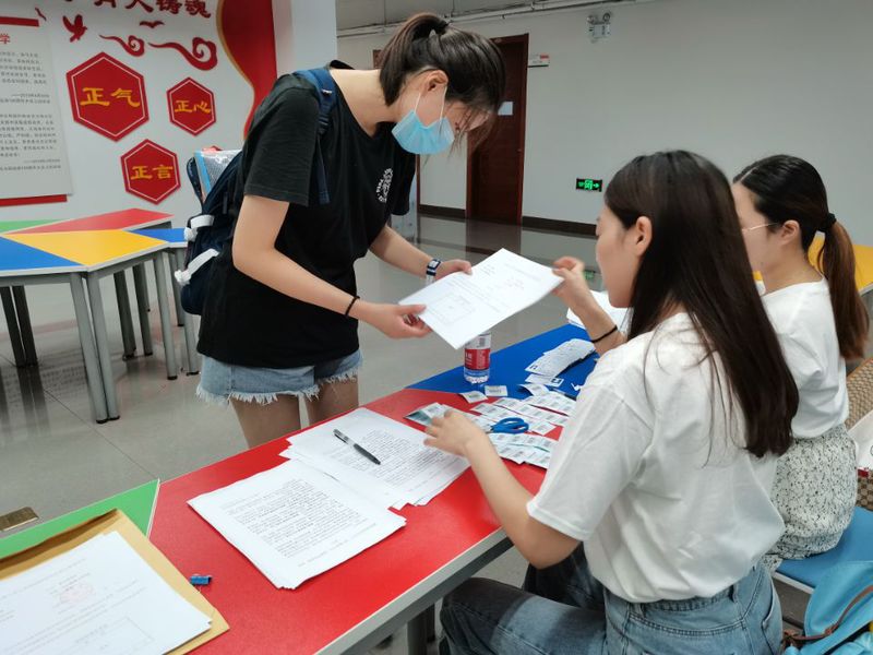 9月3日为数学学院新生报道的日子,学校北门迎新接待处早上7点,研究生党支部党员与研会成员已经做好了迎接的充足准备。新生经过校门的防疫通道后,有接待员等待在防疫签到点,有师兄师姐帮忙拉行李并引领送宿舍,有研会成员引导办理入学手续。上有学校迎新工作的整体部署,下有数学学院迎新方案的配合,数学学院迎新工作高效、忙碌、热烈的顺利开展。
