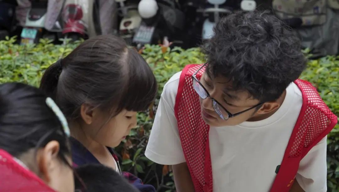 在活动中,志愿者们耐心指导孩子们进行“彩虹泡泡龙”和“泡泡颜色实验”的操作。他们一步步示范如何巧妙地将洗洁精、色素、卸妆棉和皮筋等材料组合在一起,孩子们在志愿者的帮助下亲手制作出五彩斑斓的泡泡龙。看到泡泡喷涌而出的奇妙景象,孩子们脸上洋溢着兴奋的笑容。