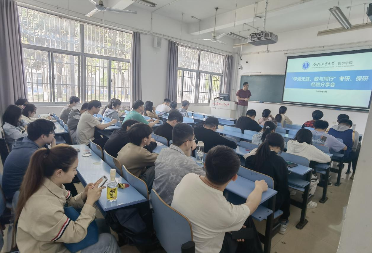 4月27日下午,数学学院在翡翠湖校区翠六教105开展“学海无涯,数与同行”考研、保研经验分享会。本次分享会由辅导员卞士挺主持,邀请秦致远、何梦颖、蒋艺都、郭晓涵四位优秀学长学姐,围绕保研、考研两个主题分享经验,2022级30余名同学参加会议。
