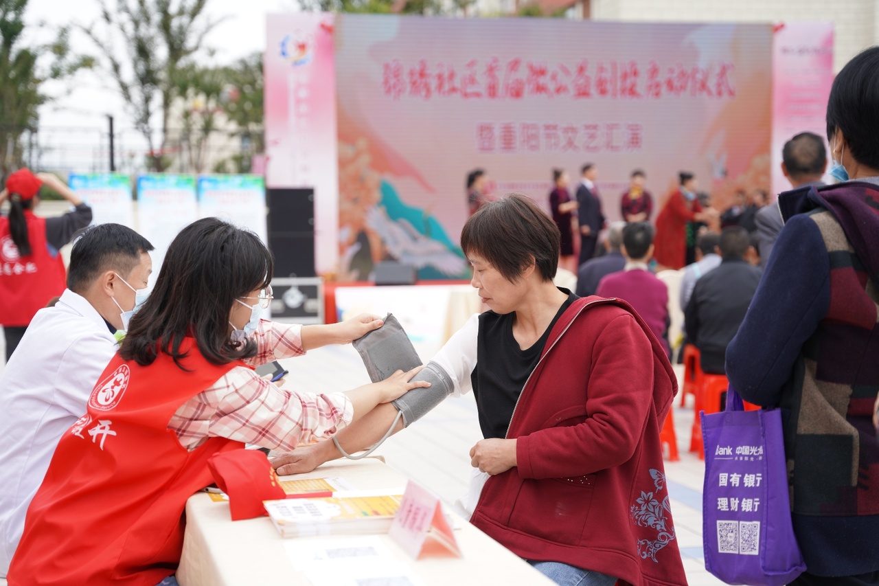 活动中,志愿者们耐心地为社区老人们测量血压、细致的协助社区工作人员解答社区公益课堂、社区微公益项目等相关问题。在重阳节文艺汇演环节,志愿者们引导老人入座、维持现场秩序并参与文艺汇演。合唱《唱支山歌给党听》、朗诵《重阳感怀》、鼓乐表演《歌唱祖国》,志愿者们和社区居民一起载歌载舞,用鼓乐齐鸣共度重阳、用欢声笑语齐聚一堂,共同感受祖国的伟大和社区的温暖,共同为老人们献上节日的祝福。