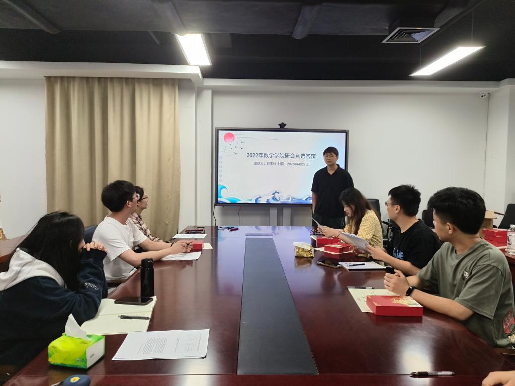 6月29日晚,数学学院于翡翠湖校区科教楼B座1710举行2021-2022年度研究生志愿者表彰大会暨第十五届研究生会换届大会。本次活动由研究生会主席郑洲主持,院学生工作负责人、受表彰同学和参与本次研究生会竞聘同学参加了换届大会。
