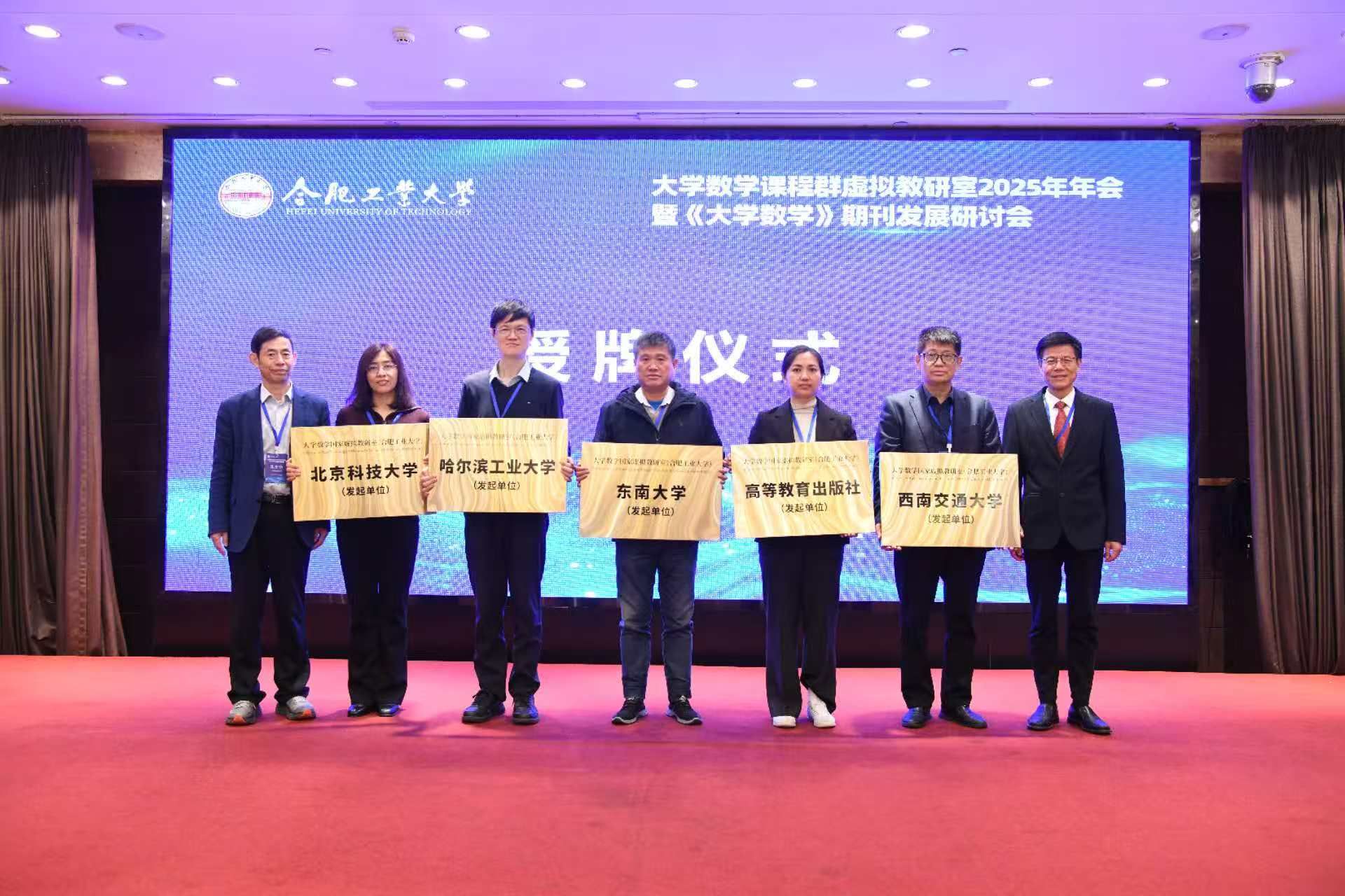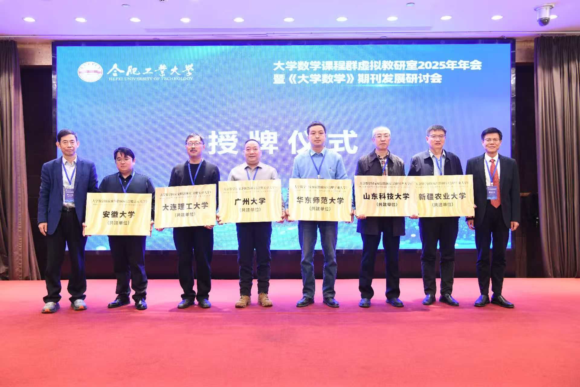 季益洪代表合肥工业大学对与会嘉宾表示热烈欢迎和亲切问候。他介绍了学校在本科教育教学改革、科学研究、学科建设等方面取得发展成绩,并为清华大学、上海交通大学等16所新加盟高校颁授教育部大学数学虚拟教研室“共建单位”牌匾。