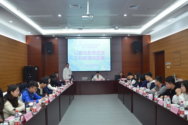 10月27日,数学学院学生会与中国科学技术大学数学科学学院学生会、安徽大学数学科学学院学生会“以数会友促交流,三校联谊共发展”主题交流学习会在翡翠湖校区科教楼A座第五会议室举行。