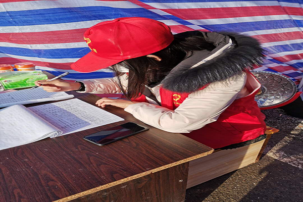 2月26日早,不到六点钟,丁海玲同学已经在防疫卡点工作了。按照社区的工作部署,丁海玲同志认真检查进入人员的出入证明、登记信息,劝返外来人员,踏踏实实做好防疫一线工作,为抗“疫”战斗贡献自己的一份力量,也充分展现了大学生党员勇挑重担、担当作为的精神风貌。